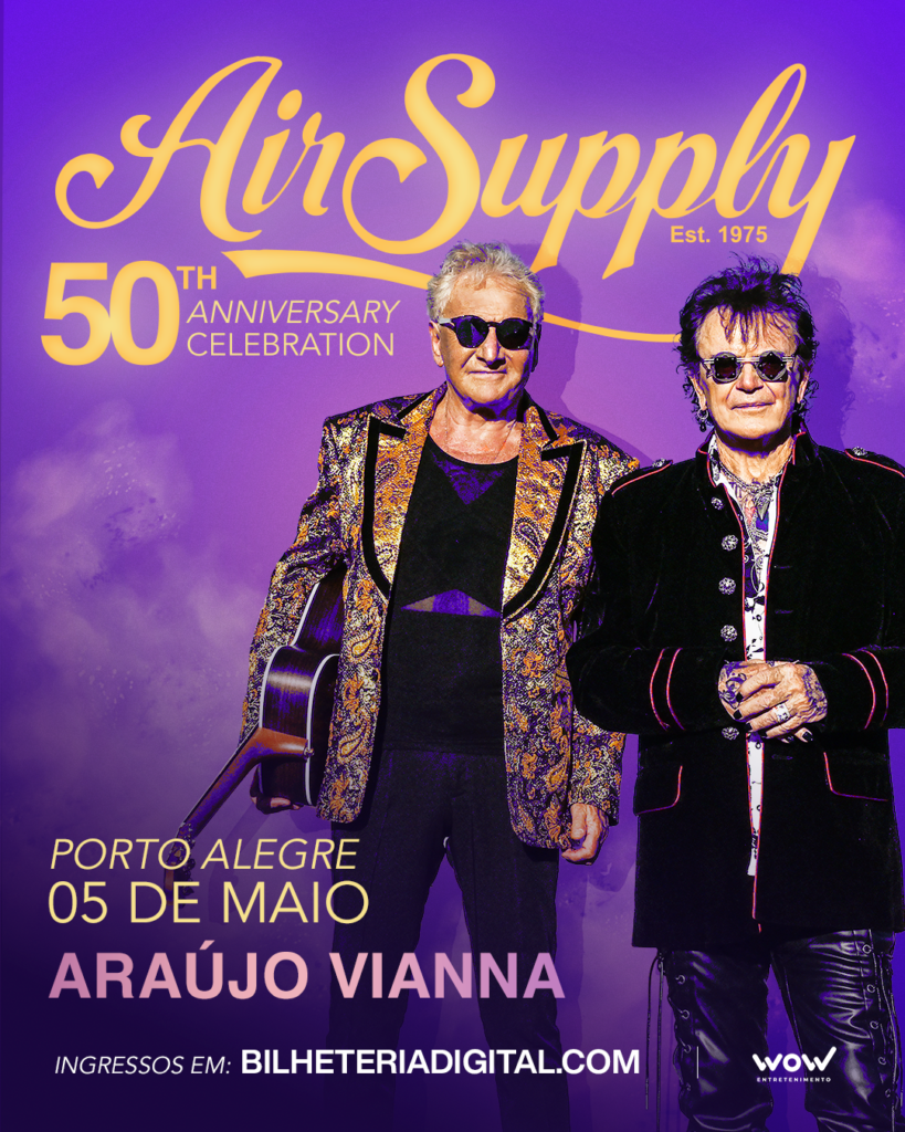AIR SUPPLY - 5 de MAIO de 2026- (terça) 21h no ARAÚJO VIANNA PORTO ALEGRE / RS EXCURSÃO- EXCURSÕES - CARAZINHO -PASSO FUNDO -…